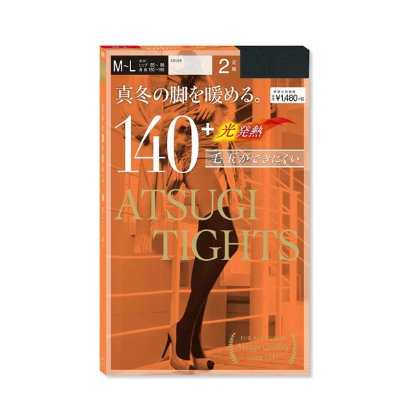 日本ATSUGI厚木【2双入】天鹅绒发热袜140D丝袜M-L