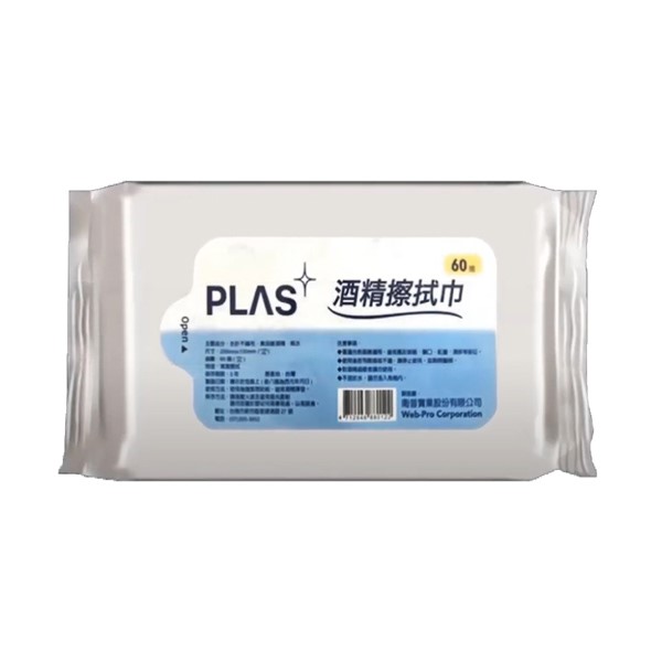 台湾PLAS【抗菌消毒】酒精擦拭巾60抽