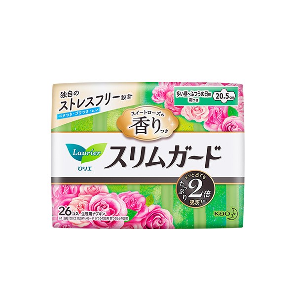 日本花王乐而雅【日用瞬吸超薄20.5cm】零触感护翼型卫生巾26枚 净味玫瑰限定款